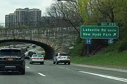 The Long Island Expressway (Interstate 495) and the Northern State Parkway pass through Lake Success.[23] Other major roads within the village include Northern Boulevard (NY 25A), Community Drive (CR 11A), Lakeville Road (CR 11), and Marcus Avenue (CR D46).[23]