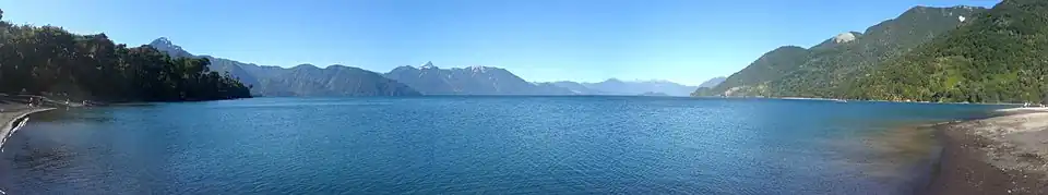 Lake Todos los Santos (Spanish for "All Saints Lake") is a lake located in the Los Lagos Region of southern Chile, 96 km northeast of the regional capital Puerto Montt and 76 km east of Puerto Varas, within the boundaries of the Vicente Pérez Rosales National Park. It has a surface area of 178.5 km² and a maximum depth of 337 m.[9] The Lake's National Park status has ensured protection to its environment. The catchment is largely covered with old-growth Valdivian temperate rain forests. The present form of the lake is the result of glacial and volcanic processes.[9][10]