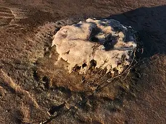 The lake environment is host to Mallee reptiles, kangaroos, emus, and the white-fronted chat, an insectivorous bird.[5] Thousands of seagulls breed on small islands on the lake.[5][6] Surrounding vegetation is made up of saltbush and samphire, which supports a range of wildlife.[5] To the east, the lunette contains significant Aboriginal relics.[5]