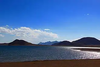 Urru Lake (Tibetan: འུར་རུ་མཚོ, Wylie: ur ru mtsho; Chinese: 吴如错; pinyin: Wúrú Cuò)is a plateau lake in Nagqu Prefecture, Tibet Autonomous Region, southwest of China, located between Nyima County and Xainza County. The lake, which is part of the Siling Lake drainage system, is fed by several rivers and drains eastward into Jargö Lake. It is 33.6 km long and 13.4 km wide and has an area of 342.7 square km.[1]