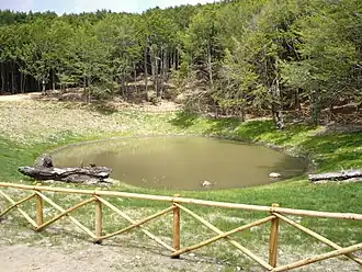Lake of the Idols (Italian: Lago degli Idoli) is a lake located in Arezzo Province, Tuscany, Italy. It is located 1,380 metres (4,530 ft) above sea level atop Monte Falterona, about 600 metres from the source of the river Arno.[1] Situated near an ancient road linking Etruria (including Tuscany and Umbria) with the Adriatic port cities of Romagna,[2] it is known for one of the largest archaeological finds of the Etruscan civilization; over 600 bronze statuettes of Etruscan and Roman origin, along with thousands of other figurines from Cisalpine Gaul and Umbria, were discovered within the lake.[3]