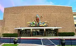 The Lakewood Civic Auditorium, a 2,000-seat performing arts venue located on the campus of Lakewood High School, opened in 1955. The auditorium hosted the Great Lakes Shakespeare Festival from 1962 to 1981.[46] The facade of the auditorium features the world's largest free-standing ceramic sculpture, Early Settler, created by Viktor Schreckengost.[47] The sculpture is commonly known as "Johnny Appleseed" who was the subject of Schreckengost's design.[48]