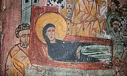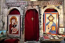 The Ushguli Church of the Mother of God,[a] popularly known as the Lamaria Church,[b] is a medieval Georgian Orthodox church in the community of Ushguli in Upper Svaneti. It is a simple hall church, with a projecting apse and an ambulatory. The interior contains two layers of medieval frescoes, in a state of deterioration. The church is inscribed on the list of the Immovable Cultural Monuments of National Significance of Georgia.[1]