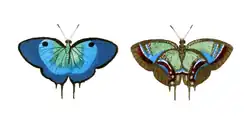 They show some similarity to Evenus (probably a close relative) and Paiwarria (probably a slightly more distinct member of the Eumaeini). But whether Lamasina is in fact a close relative of the former is not thoroughly studied. The upperwings of Lamasina males and females are bluish, with broad black margins which are broader in females. The underwings are greenish to brown, with a striped or mottled pattern that distinguishes males from females. In some, the males have blue forewing undersides also.[3]