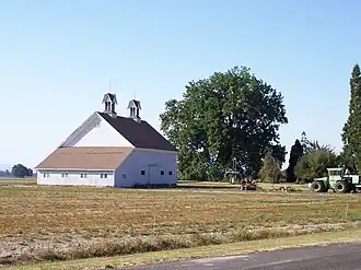 The barn is a 40 feet (12 m) by 60 feet (18 m) timber-frame building built in 1888. It was built to house horses being raised for fire and police departments of the Pacific Northwest. Its ornamented cupolas were assessed to be the finest in Linn County.[2]