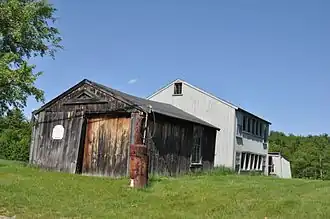 The built infrastructure of the farm consists of eleven buildings, located along either side of Lamson Road. The main house is on the east side, consisting of a multi-section structure whose core is a Cape style 1-1/2 story timber frame house built about 1770. Most of the outbuildings date to the early 20th century; the main cow barn, made by combining two older structures, has at least one section dating to the early 19th century. Located northeast of the farmstead are the foundational remains of a second farm property, which was purchased by the Lamsons in the early 20th century. Located near the junction of Lamson and Cross Streets is a stone foundation which once held a small district schoolhouse.[3]