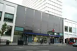 Lancaster Gate station was opened on 30 July 1900 by the Central London Railway (now the Central line). The original station building was typical of the work of the line's original architect Harry Bell Measures. It was demolished and a new surface building constructed as part of the development above in 1968. The development was designed by T P Bennett & Son as an office block but converted soon after into a hotel. In 2004–05 the lower floors of the hotel were re-clad in white stone to a design by Eric Parry Architects.[8] The hotel received planning permission for the re-cladding to include the station façade.[9]