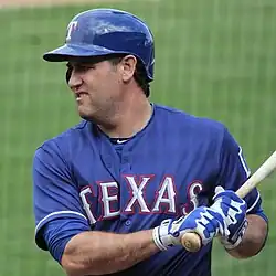 On January 5, 2013, Berkman agreed to a one-year contract with the Texas Rangers for approximately $10 million.[36] In 73 games, Berkman hit .242 with six home runs and 34 RBIs in 256 at bats. On October 31, the Rangers declined his option, which made him a free agent.[37] On January 29, 2014, he decided to retire.[38] Berkman, along with former teammate Roy Oswalt signed a one-day contract with Houston to officially retire as a member of the Astros on April 5, 2014.[39]