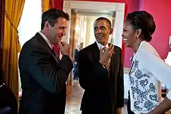 Berkman (left) with President Barack (center) and First Lady Michelle Obama at the White House in 2012
