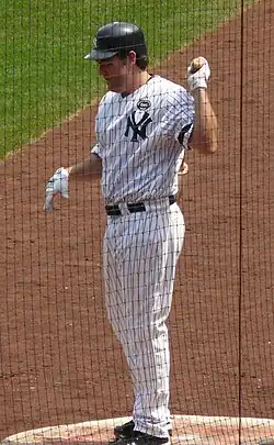 On July 31, 2010, Berkman was traded to the New York Yankees for minor leaguers Jimmy Paredes and Mark Melancon.[32][33] He served as both a designated hitter and backup first baseman during his tenure with New York. During the 2010 ALCS, Berkman served first base for the rest of the post-season when Mark Teixeira went on the disabled list due to a hamstring injury. The Yankees eventually lost the ALCS to the Texas Rangers in 6 games.