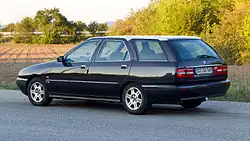 The station wagon version of the Kappa, designated "SW" by Lancia, was designed and built by Pininfarina and did not differ from the saloon's exterior dimensions, sharing most of its body panels.[6] Only 9,208 cars were built in Pininfarina's factory.[3] The estate version was also available with Boge-Nivomat self-levelling hydropneumatic rear suspension.