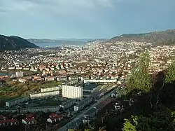 Landås is a neighbourhood in the city of Bergen in Vestland county, Norway. Landås is located by the western side of the Ulriken mountain massif, from southeast of Haukeland University Hospital to the neighborhood of Nattland almost 3 kilometres (1.9 mi) further south. It was the last part of the historic Årstad municipality to be urbanised, with the development of Landås taking place mainly after World War II. The Faculty of Education of Bergen University College is located in Landås. The Grieg Academy is the original name of the music department at this campus of Bergen University College, however the music school with a very similar name - "Grieg Academy-Institute" - is affiliated with the University of Bergen and located in downtown Bergen.[1] The unique Landås Church is located in this neighborhood.[2]
