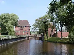 The marshland itself, forming part of the Elbe Marshes, is divided in turn into the fertile sea marsh, the so-called Hochland ("highland", ca. 1–2 m above NN; comprising much of today's collective municipality of Hadeln), and the Sietland on the edge of the bogs. Drainage is difficult and is handled mainly by the pumping station (Schöpfwerk Otterndorf) in Otterndorf as well as by the small lock near Altenbruch. At Otterndorf the waters of the Medem and its many tributaries, and the water of the Hadeln Canal, and Elbe-Weser Shipping Channel, is pumped into the Elbe. Hitherto the area, particularly the lower-lying Sietland which lies about 0.8 m below NN, had been chronically endangered by flooding.