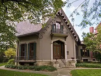 The Lane–Hooven House is a historic house museum in Hamilton, Ohio. Built in 1863 for Clark Lane, a Hamilton industrialist and philanthropist, the octagonal house features a brick exterior with Gothic Tudor elements. Other features include an open spiral staircase extending from the basement to the third floor turret, cast-iron fence, a greenhouse and a fountain.[2] It was listed in the National Register on October 25, 1973.[1]