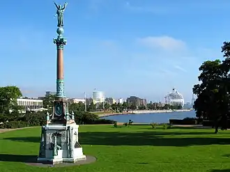 The Langelinie Park (Danish: Langelinieparken) stretches from Esplanaden in the south to Langelinie Marina and the base of the Langelinie Pier in the north. Formally, it includes Kastellet although this site is generally referred to under its own name. The park contains numerous monuments, buildings, a marina, statues and a playground. Among these are the Gefion Fountain, the Ivar Huitfeldt Column and The Little Mermaid.