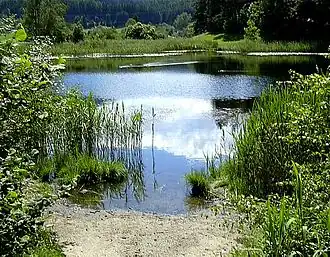 The Fen of Lans (also Lanser Moor or Water Lily Pond) is located north above Lake Lans at an altitude of 582 metres in the Paschberg forest.[1] With an area of 8000 m² and a depth of 3 metres the lake is much smaller than its neighbour.