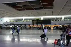 A new passenger terminal was constructed along with a control centre, and on 3 March 1970 international and domestic flights began using the airport. A centrepiece of the Guacimeta terminal was the mural created by César Manrique entitled Lanzarote.[4]