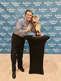 ![]() Harris with the Larry O'Brien Championship Trophy | |