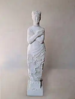 An installation Cross My Heart, St. Agostino, Pietrasanta, Italy, in 2011, consisted of twelve rather like sculptures of maidens with their arms crossed over the chest, made of white marble. A similar sculpture of a woman with arms crossed, is Listen to Your Heart, a granite sculpture with a height of 260 cm.