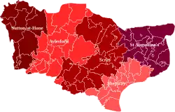 The lathe was an important administrative, judicial and taxation unit for 600 years after the Domesday Book of 1086. The functions of lathe and hundreds were somewhat similar, with a lathe covering a much wider area. Although never formally abolished, they have no administrative functions today.[5] The Sheriff toured the county twice yearly attending on the lathes, in the case of Sutton at Hone, possibly at Shire Hall. The lathe was responsible for the raising of aids and subsidies for the Militia. However the lathe court became anomalous as it fell between the hundredal courts below and the justices of the county (in petty and quarter sessions) above.[6]