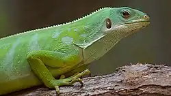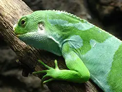 Brachylophus fasciatus, the Lau banded iguana, is an arboreal species of lizard endemic to the Lau Islands of the eastern part of the Fijian archipelago.[1] It is also found in Tonga, where it was probably introduced by humans.[3] It is one of the few species of iguanas found outside of the New World and one of the most geographically isolated members of the family Iguanidae.[4] Populations of these iguanas have been declining over the past century due to habitat destruction, and more significantly, the introduction of mongoose and house cats to the islands.[4]