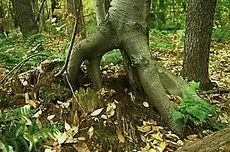 ![]() One tree grows from the rotting stump of another at Laurel Ridge State Park | |