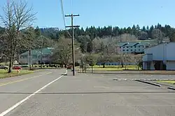 Initially built on 5 acres (20,000 m2), the academy purchased more land from Walker in later years.[8] The institution was expanded with the addition of a chapel in 1908 that was subsequently renovated and expanded in 1919.[8] Principal Arye left the school in 1907 and J. L. Kay became the principal, expanding the curriculum to twelve grades.[8] The academy added a building for teaching manual labor in 1925 followed by a new administration structure in 1943.[8] In 1950, the unaffiliated but adjacent Laurelwood Adventist Elementary School opened.[10] Adventist owned Harris Pine Mills had a furniture making plant across the street that provided some employment to students after it opened in 1965.[11]