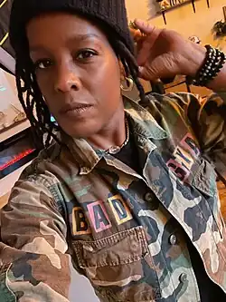 ![]() Documentary filmmaker Laurie Townshend modelling jacket hand-painted by Hieram | |