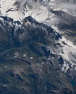 The Lauterbrunnen Wall is a term used in the English-speaking mountaineering world[1] to refer to a north-west-facing mountain wall in the Bernese Alps in Switzerland. It runs for 8 kilometres from the Gletscherhorn (3,983 m) in the east, through the Ebnefluh, (3,962 m), the Mittaghorn (3,897m) and the Grosshorn (3,754 m), to the Breithorn (3,785 m) in the west, where the wall comes to an end at the col which separates it from the Tschingelhorn. The Wall is named after the village of Lauterbrunnen, which lies to the north.