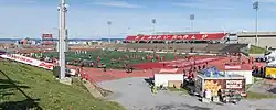 In the following season, Laval lost a Vanier Cup game for the first time in program history, as they fell 41-38 to the McMaster Marauders in double overtime in the 2011 Vanier Cup.[16][17] This game was played at BC Place and was the first Vanier Cup to be played in Vancouver.[16] The Rouge et Or would exact a measure of revenge the following year in a rematch against the Marauders in the 48th Vanier Cup.[18] The team won a Canadian collegiate record seventh Vanier Cup championship in front of an also record crowd of 37,098 fans at the Rogers Centre in Toronto by a score of 37–14.[18] In 2013, they won back-to-back national championships for the second time in program history when they defeated the Calgary Dinos in the 49th Vanier Cup by a score of 25–14.[19] The game was again played at Telus Stadium on the campus of Laval University in front of 18,543 fans.[19]