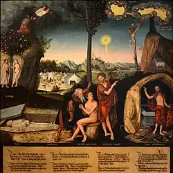 Law and Grace (also The Original Sin; The Redemption of Mankind; Law and Gospel; Damnation and Salvation; The Fall and the Redemption of Mankind, The Old Testament as Lex and the New Testament as Gratia, in German: Sündenfall und Erlösung or Gesetz und Gnade, Gesetz und Evangelium) is considered one of the most important paintings by Lucas Cranach the Elder.
