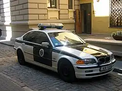 Car of the former Latvian Security Service of Parliament and State President sporting standard livery of Latvian police cars