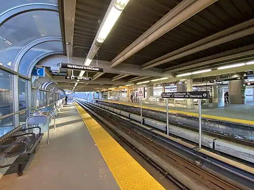 This station was a "partially accessible" station, as all services within the station, except for the northbound platform, were accessible. The TTC suggested that people in need of accessible service onto the northbound platform take Line 3 southbound to Kennedy station and double back to Lawrence East. An accessible fare gate was also available inside the station at the main fare booth.[6]