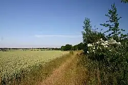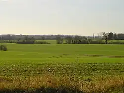 - Ancient rolling farmlands - This is a rolling arable landscape of chalky clays and loams. The enclosure over a lot of the landscape retains much of the organic pattern of ancient and species-rich hedgerows and associated ditches. There are however some areas of field amalgamation and boundary loss, especially on the interfluves between the small valleys. The settlement pattern is dispersed farmsteads of mediaeval origin interspersed with some larger hamlets and occasional villages. The farms are large but are mainly owner-occupied rather than estate owned. The hedgerow trees are of typical clayland composition: oak, ash and field maple, with suckering elm. Although there are some areas of extensive field amalgamation, overall the landscape is largely intact, and accessible thorough a dense network of winding roads with wide verges.[54]