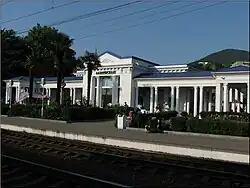 Lazarevskaya railway station (Russian: Железнодорожная станция Лазаревская) is a railway station of the North Caucasus Railway, subsidiary of Russian Railways, located in Lazarevskoye Microdistrict, Lazarevsky City District of the city of Sochi, Krasnodar Krai, Russia. The station was opened in 1918[1] and was renovated for the 2014 Winter Olympics.