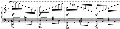 "Le Chemin de fer" (French for "the railway" or "the railroad"), Op. 27, is a programmatic étude for piano composed by Charles-Valentin Alkan in 1844,[1] frequently cited as the first musical representation of a railway.[2][3] It is a perpetuum mobile composition at an extremely fast tempo, in D minor,[3] and performance at tempo lasts approximately five minutes.[4]