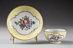 Le Nove porcelain was made in the 18th century in the town now called Nove, near Bassano, then in the Republic of Venice's mainland territories, the terrafirma. It was made at a factory owned by Pasquale Antonibon, who was already making fine maiolica in fashionable styles, which continued to be made alongside the porcelain. Production of porcelain began in 1762 and ended when Antonibon died in 1773. But it resumed in 1781, when Francisco Parolin (or Parolini) leased the factory for twenty years in a partnership with the Antonibons, known as the "Parolin period".[1][2] This lasted until 1802.[3] Production of porcelain continued intermittently until 1835.