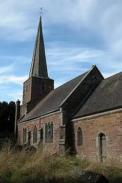 The Church of St John the Baptist is a Grade II* listed building. The church consists of tower, with spire, three bells, nave, chancel and north aisle. The north aisle is terminated by a chapel, probably erected by the Grey family of Wilton, whose arms are placed there. The church was restored in 1854, and fitted with open seats. The marble baptismal font, of c. 1200, is south Italian, given to the church in 1909 in memory of Sarah Decima Bradney (died 1907). The knotted shaft stands on an elephant and the bowl has a band of Cosmati work.[3] The Church of England parish is in the united Ariconium benefice of six parishes: Aston Ingham, Hope Mansell, Lea, Linton, Upton Bishop and Weston under Penyard.