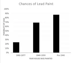 The reason that lead paint is such a common issue is because of its durability and widespread use.[5] It was constantly endorsed by local and state governments until the 1970s, despite domestic occurrences of lead poisoning and reports from European countries that revealed its toxicity. By 1940, it was commonly associated with negative effects. It was only in the 1970s when the U.S. took action against lead based paints.[5][6]