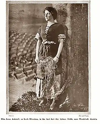 Leah Kleschna opened to positive reviews in London on May 2, 1905, at the New Theatre with Lena Ashwell in the title role. The production by Charles Frohman's company resulted in the threat of legal action by Mrs. Fiske who claimed she had purchased the English rights to the play.[2][3]