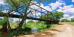 ![]() ![]() Sandies Creek Iron Rail-Bridge c. 1899 above;[1] Leesville historical-marker below | |