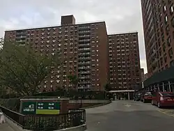 The complex of twenty 17-story apartment towers covers 40 acres (16 ha) and houses over 14,000 people in 4,605 apartments. (Each building's topmost floor is signed as 18, and there are no thirteenth floors.)[1][2] The buildings are all named after cities or countries around the world and are grouped in clusters of four based on their theme. This naming system came about during the 1964 New York World's Fair, which was located in nearby Flushing Meadows–Corona Park.[1] The development is part of Queens Community Board 4.[3]