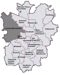 Lehndorf-Watenbüttel is a Stadtbezirk (borough) in the northwestern part of Braunschweig, Germany. The Stadtbezirk comprises the quarters Kanzlerfeld, Lamme, Lehndorf, Ölper, Völkenrode, and Watenbüttel.[2]