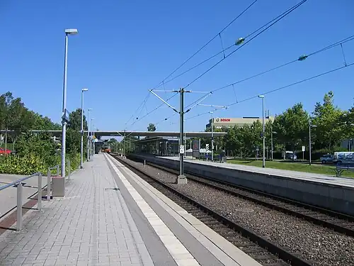 A freight yard was planned at Max-Lang-Straße with a loading road and sidings for the Bosch company, but it was not built. An unused bridge over the underpass forms part of the original plan.