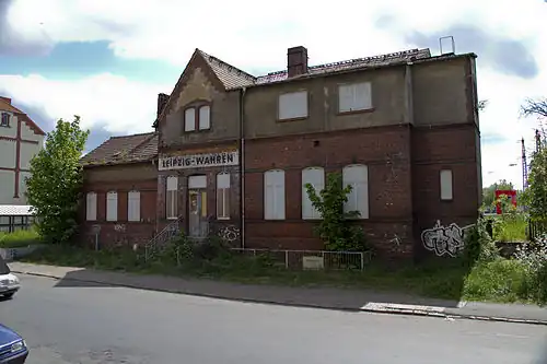 Leipzig-Wahren station is a station in the Leipzig suburb of Wahren in the German state of Saxony. At the beginning of the 20th century, a large freight yard was developed at it. Until the end of marshalling of trains on 31 December 1994, the Leipzig-Wahren freight yard was along with Engelsdorf (b Leipzig) one of the two major marshalling yards in the Leipzig rail node.