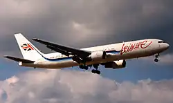 A Boeing 767-300 of Leisure International Airways upon take-off in 1999.