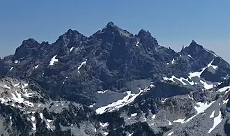 Lemah Mountain is a mountain peak in the Snoqualmie Crest, a part of the North Cascades Mountains, of the US state of Washington, most noted for its five distinct summits. It is approximately 7.7 miles (12.4 km) from Snoqualmie Pass. The name Lemah comes from the Chinook Jargon word Lemah, in turn derived from a French word, le main, meaning "hand".[4] Lemah Mountain formed by rocks crumpled into mountains by the Cascadia subduction zone where the Juan de Fuca and North American Plates meet.