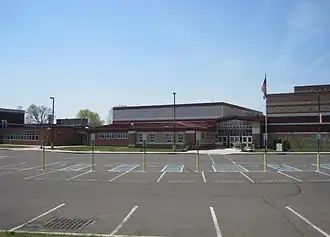 After the regional district was formed in 1955, a plot covering 50 acres (20 ha) in Medford was selected in June 1956 as a site for the school, which was estimated to cost $2 million (equivalent to $23.5 million in 2024).[9] Lenape High School opened in September 1958, before which students from Medford, Medford Lakes and Tabernacle Township had attended Rancocas Valley Regional High School.[10][11] Starting with 548 students in freshman and sophomore classes, the school grew quickly. Lenape draws its student body from Mount Laurel.[12]