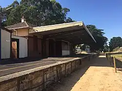 The station opened in 1891 as a terminus, the line being extended to Welshpool the next year.[1] Initially the station was planned to be named "Koorooman", later being changed to "Leongatha" at time of construction.[2] For a number of years after the ending of regular V/Line passenger operations on the line east of Cranbourne in 1993,[3] the station was the terminus of the former South Gippsland Tourist Railway, but its operations ceased in January 2016.