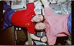 Candid photograph in middeck with American pilot Steve Lindsey, January 1998